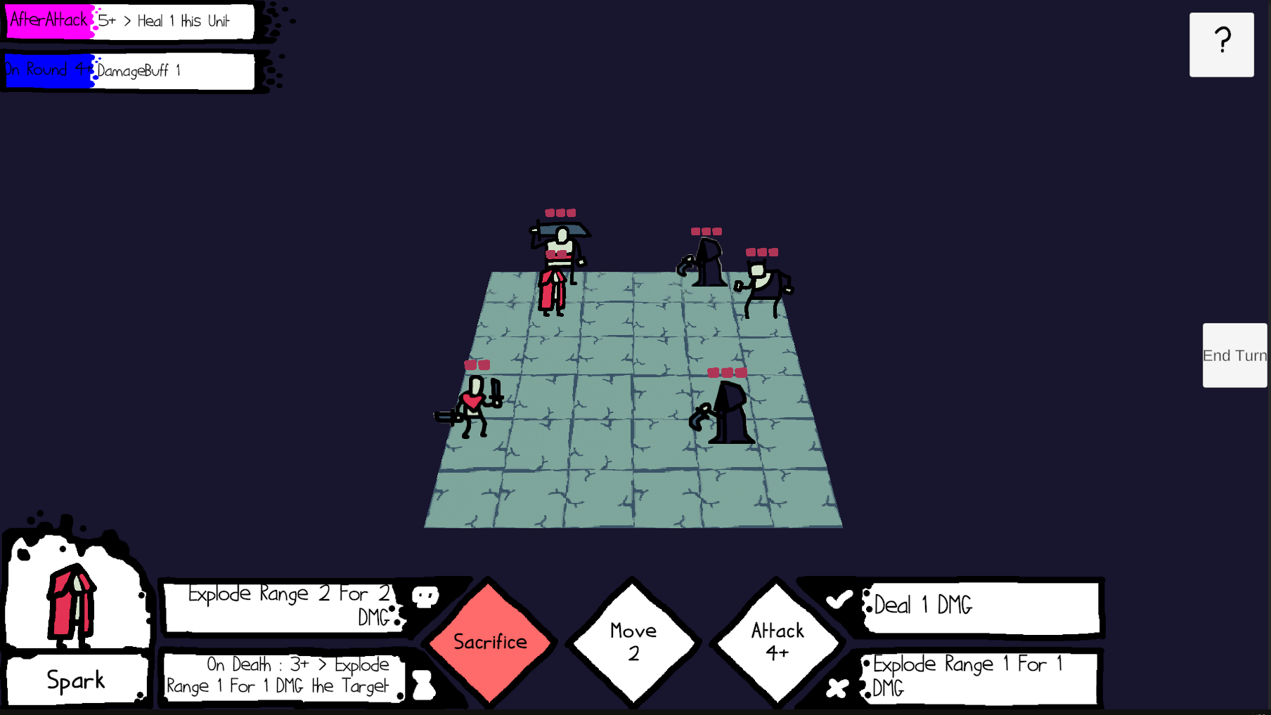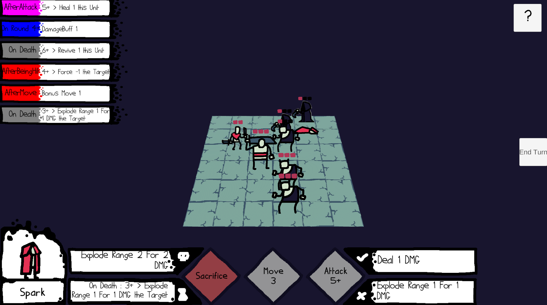 In battle, you will have an "?" marker to explain most of the interface. Selection is on the tile not the unit ( make some weird behaviour)